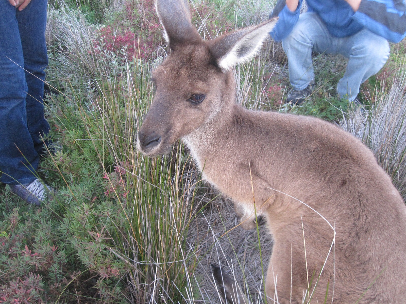 O jeito que eles pulam é muito fofo. Eles usam o rabo como apoio. A espécie que tem na Heirisson island é o canguru cinza. O maior de todos é o Canguru vermelho e esse eu vi na estrada mais pro Sul da western Australia.