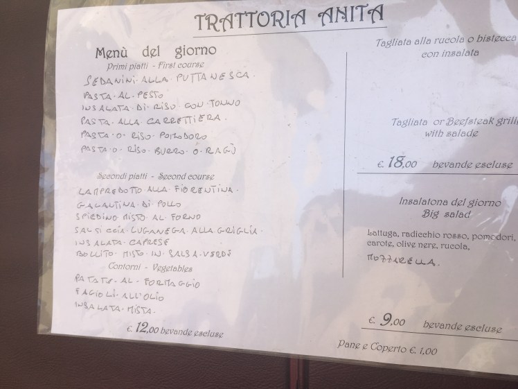 1. Trattoria Anita: um dos restaurantes mais tradicionais de Florença e um dos mais antigos. Foi recomendado para minha amiga que é chef e fez um Mestrado em Florença por seus professores e confirmado por todos os italianos que conheci. Comendo aqui, terá a autêntica experiência italiana. Cardápio escrito a mão, pequeno, sem ar condicionado (fui em julho e quase morri de calor), garçom que não serve água gelada (italiano acredita que água gelada causa indigestão, ou os italianos que conheci acreditam nisso). O melhor prato é o mais simples: espaguete al ragu, ou bologuesa.